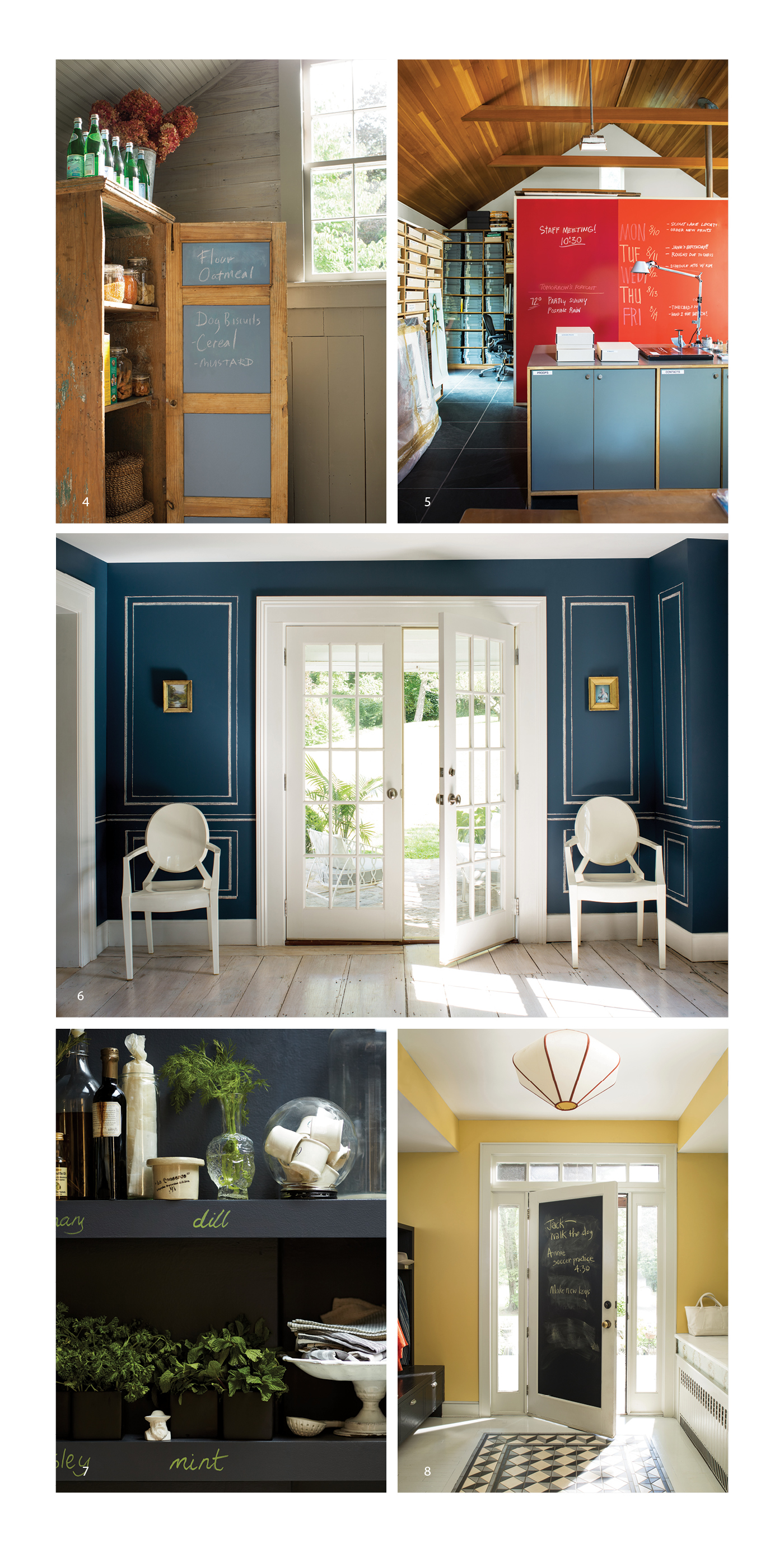 | Turn virtually any surface into an erasable chalkboard with Benjamin Moore Paints. From oversized wall planners to shopping lists on your kitchen walls and cupboards, the innovative Chalkboard Paint offers endless opportunities to unlock your creative side. Available in any of the 3,500 Benjamin Moore colours, homeowners are able to find the right colour to match their interior scheme without being restricted by a traditional black. Whether you’re turning a simple cabinet door into a place for your shopping list or your home office cupboards into your weekly schedule, Chalkboard Paint can add a practical and design edge to any space. |
